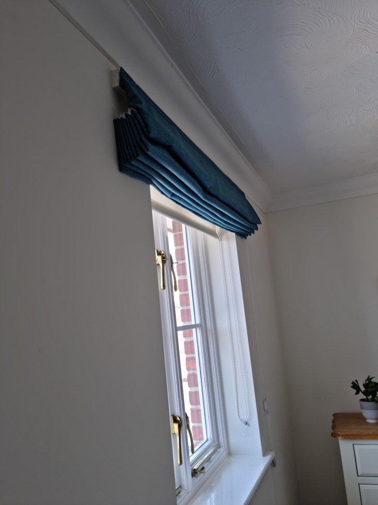 Roman blinds are a structured blind designed to fold neatly when pulled up.