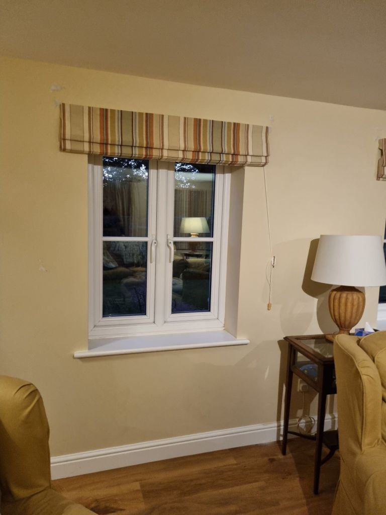 Our blinds are fitted with a cassette that covers the blind and all the fittings. Theses blinds are made to measure, and we offer a fitting service. We have a wide range of designs to choose from, so pop into our showroom and have a look.